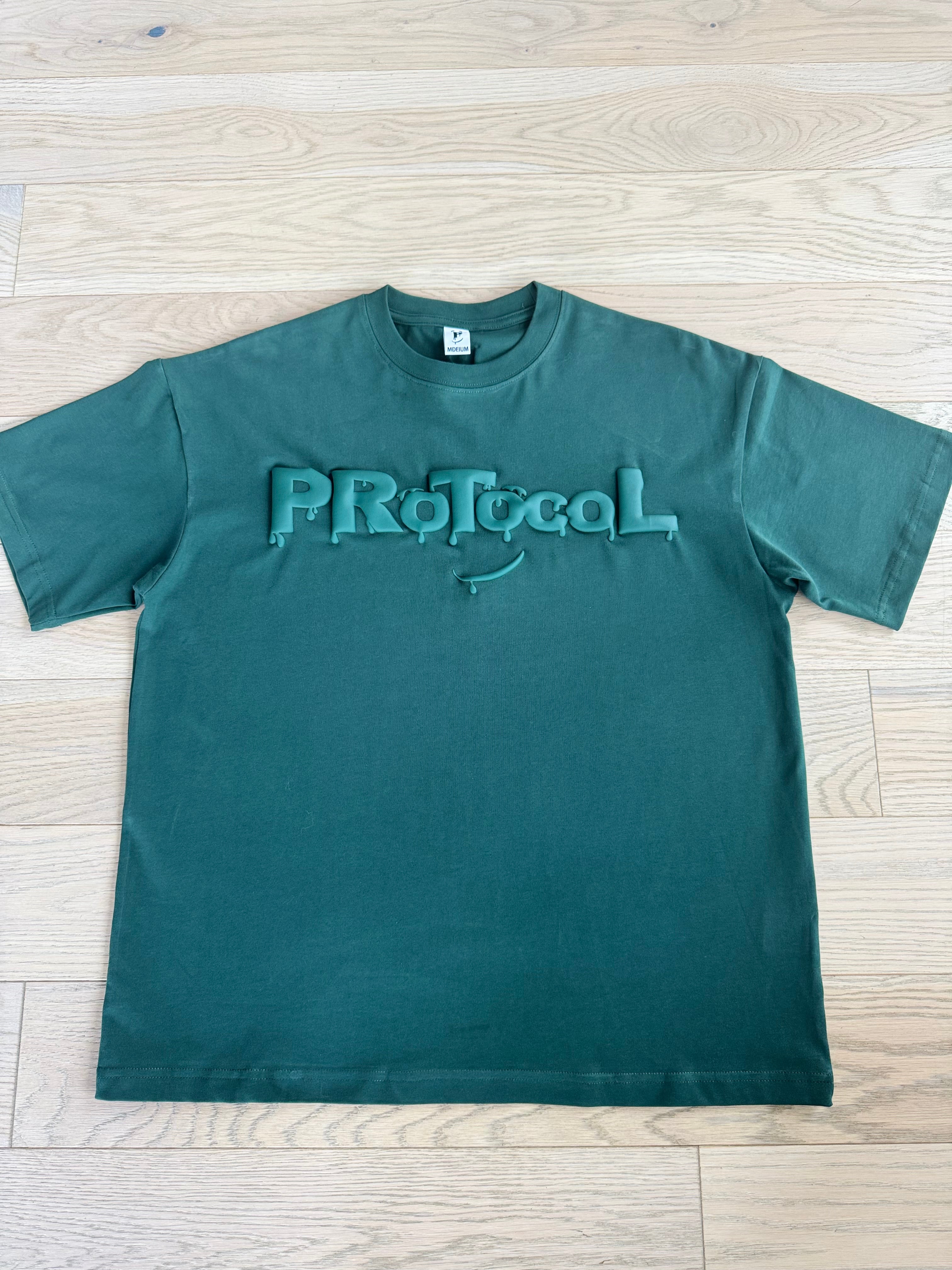 Sitting at 260 gsm, the Forest Green PRoTocoL puff print tee is an anti-pilling, breathable, eco-friendly, anti shrink garment featuring our puff print "PRoTocoL" logo on the front chest and "P" logo on the back neck.